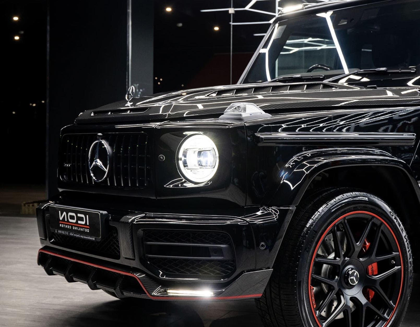 На представленных G-class выполнили следующие процедуры – защита кузова матовой антигравийной пленкой, стайлинг под версию Edition 1, установка обвеса из карбона от TopCar Design, а также комплекс процедур по уходу и защите.