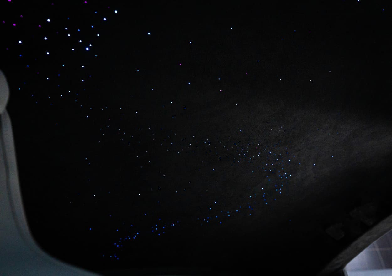 Тюнинг интерьера G-class включает в себя множество возможностей преобразить салон, начиная с декоративных изменений, и заканчивая дооснащением. Пошив салона, установка «Звездного неба» по индивидуальному дизайну, покраска элементов салона, установка комфортного дивана, карбоновые вставки и многое другое.