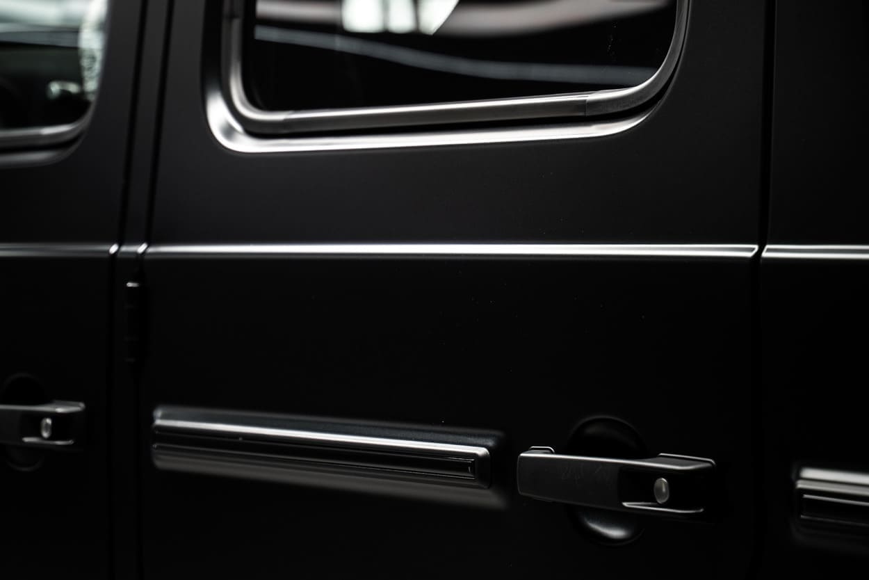 В стандартный пакет по защите и дооснащению G-class входят следующие услуги – установка бесштыревых доводчиков на 5 дверей, установка электрических выдвижных порогов, модернизация автозвука, установка бесключевого доступа, комплекс процедур по уходу и защите.